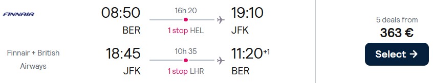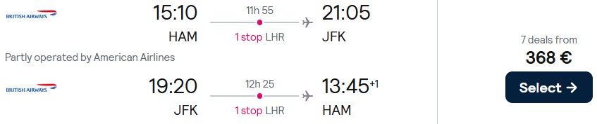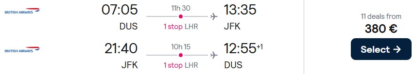 British Airways, American Airlines und Finnair bringen Sie ab Düsseldorf, Hamburg, München oder ab Berlin günstig nach New York. Reisen sind von Februar bis Dezember 2026 möglich, ausgenommen ist der Juli 2026. Die Preise starten schon ab 363 Euro.