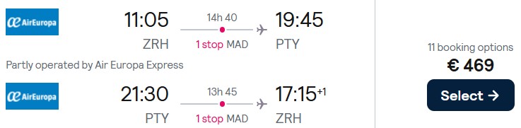 Fliegen Sie mit Air Europa von Zürich nach Panama City ab 469 Euro. Verfügbarkeiten gibt es von Januar bis März 2026.