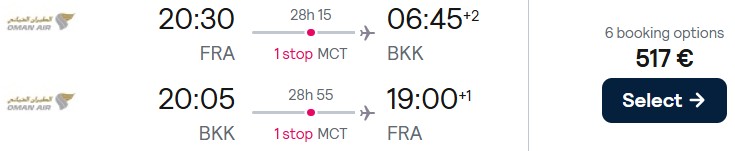 Fliegen Sie mit Oman Air ab 478 Euro von Frankfurt oder München nach Bangkok. Verfügbarkeiten gibt es zwischen März und Juni 2026.