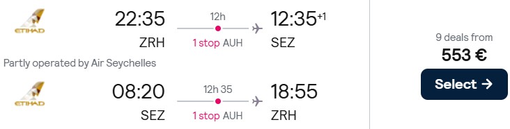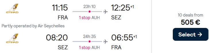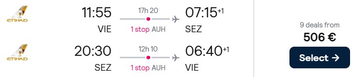 Fliegen Sie mit Etihad Airways von Frankfurt, Wien oder Zürich auf die Seychellen ab 505 Euro. Buchbar ist das Angebot bis zum 26. Dezember 2025 für Abflüge von Januar bis Oktober 2026, ausgenommen ist der Juli 2026.