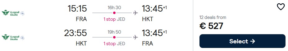 Fliegen Sie mit Saudia von Frankfurt preiswert in der Economy Class nach Phuket. Verfügbarkeiten gibt es zwischen September und Dezember 2026.