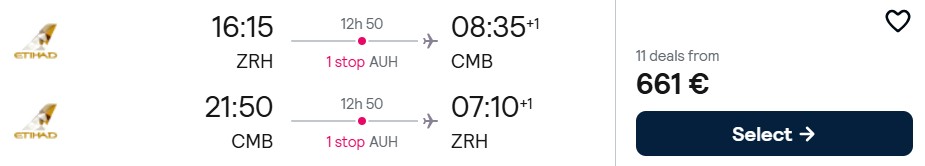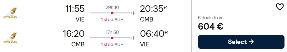 Etihad Airways bringt Sie ab München, Wien oder Zürich günstig nach Colombo. Die Preise starten ab 568 Euro bei Abflug im Mai und Juni sowie von September bis Dezember 2026.