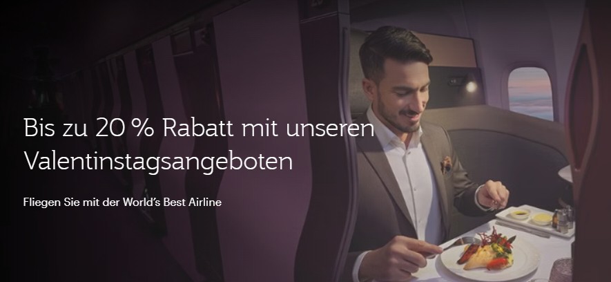 Bis zum 18. Februar erhalten Sie bei Qatar Airways Buchungen einen Rabatt von bis zu 20 %. Verreisen dürfen Sie bis zum 10. Dezember 2026. Ab Deutschland, Österreich und ab der Schweiz gibt es die Ermäßigung auf Business Class Tickets nach Riad, Maskat, Sansibar, Abu Dhabi und nach Kathmandu.