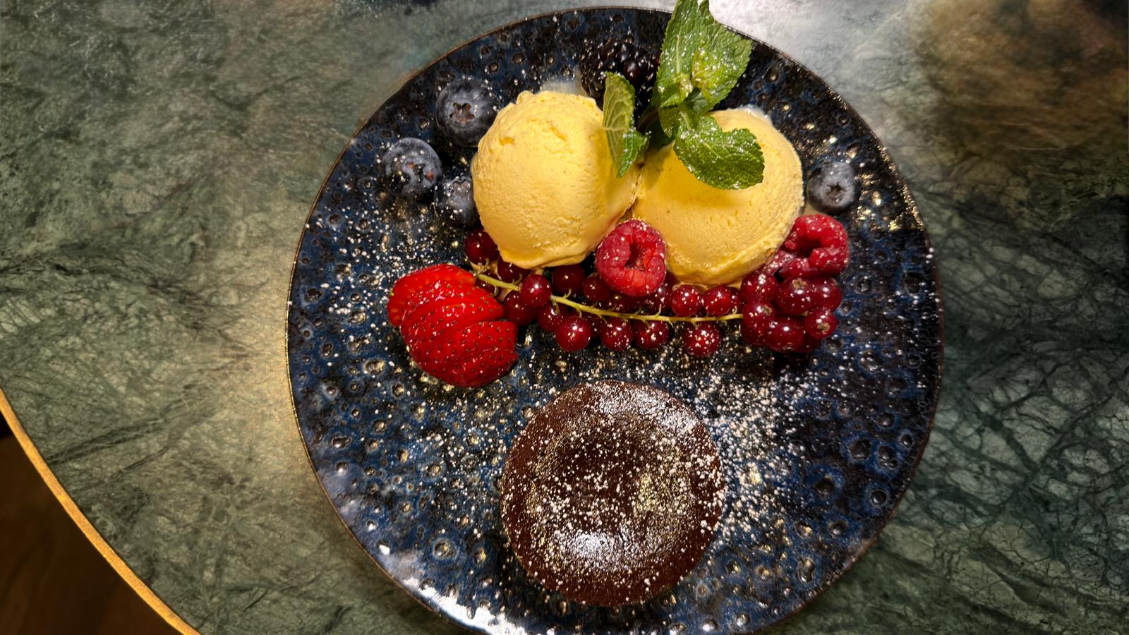 Ein besonderes Highlight ist das Chocolate Fondant mit Vanilleeis als Nachspeise.