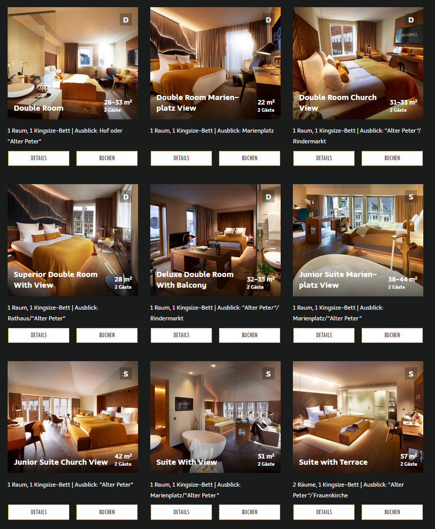 Ich persönlich würde “Suite with View” empfehlen, da man hier einen doppelten Ausblick auf Marienplatz und Kirche hat. Und natürlich die Junior Suiten mit Marienplatz Ausblick. Der Ausblick ist das Alleinstellungsmerkmal in München. Denn einen solchen Blick bietet kein anderes 5 Sterne Hotel in der Stadt.