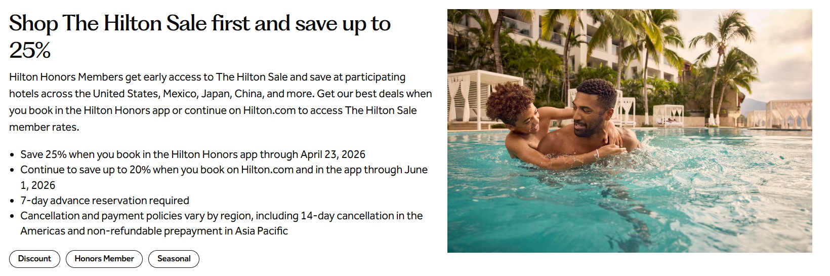 Bei Hilton in den USA, in Mexiko, Japan und China erhalten Sie bis zu 25 Prozent Rabatt auf Aufenthalte bis zum 04. April 2027, wenn Sie bis 01. Juni 2026 buchen. Es gilt eine Vorausbuchungsfrist von 7 Tagen.