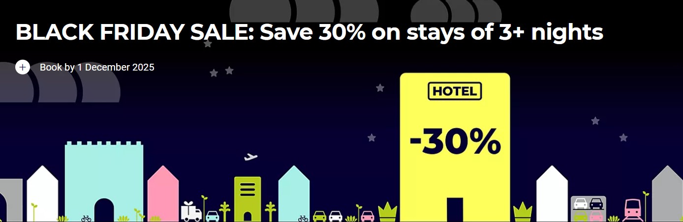Buchen Sie vom 26. November bis zum 01. Dezember Aufenthalte von mindestens 3 Nächten zwischen dem 08. Dezember 2025 und dem 15. März 2026 in teilnehmenden Accor Hotels in Europa und Nordafrika und sparen Sie 30 Prozent. Als Accor ALL Mitglied erhalten Sie zusätzliche 10 Prozent Discount.