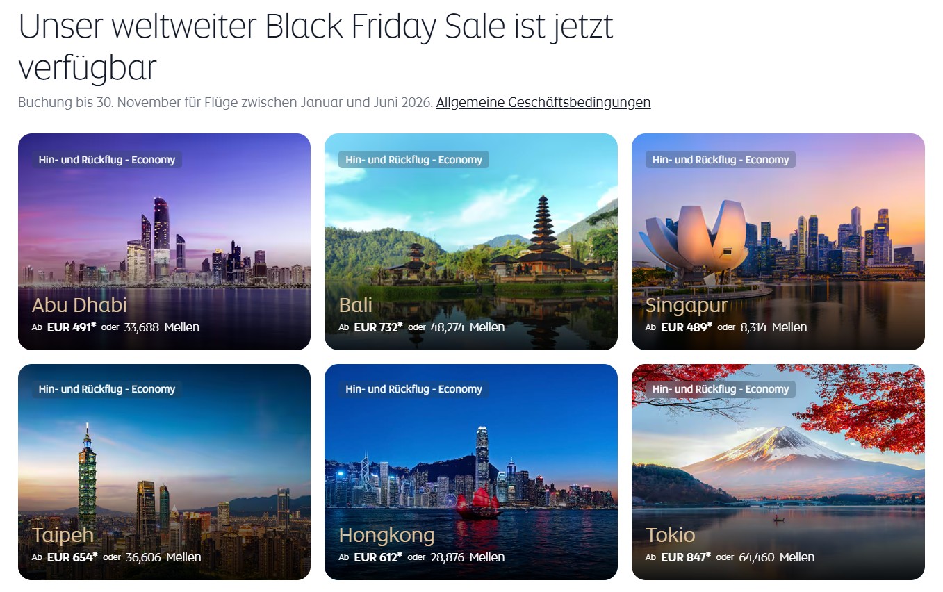 Buchen Sie bis zum 30. November 2025 Etihad Airways Economy Class Tickets für Reisen von Januar bis Juni 2026 und sichern Sie sich bis zu 35 Prozent Rabatt.
