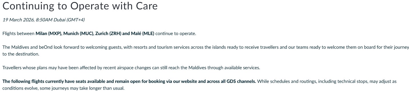 Keine speziellen Meldungen auf der Website ersichtlich. Hier Flugstatus prüfen