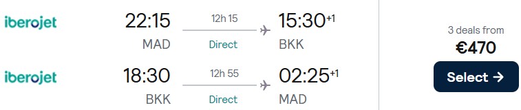 Fliegen Sie nonstop mit iberojet ab 470 Euro von Madrid nach Bangkok. Der Reisezeitraum erstreckt sich von April bis Juli 2026.