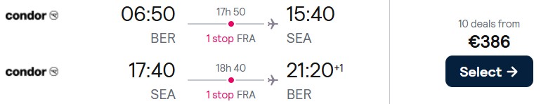 Mit Condor reisen Sie bereits ab 386 Euro von Berlin nach Seattle. Verfügbarkeiten gibt es im November 2025.