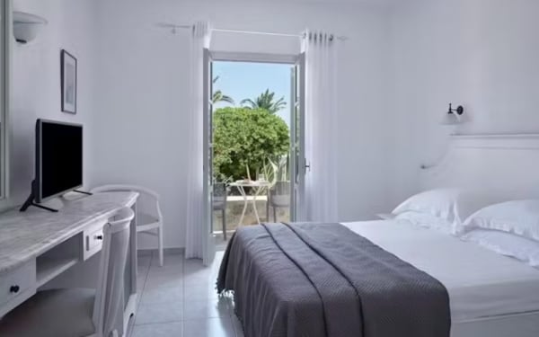 Verbringen Sie einen ruhigen Aufenthalt fernab des Trubels im Myconian Sunrise Relais & Chateaux Hotel auf Mykonos, nur wenige Schritte vom Meer entfernt. Secret Escapes bietet an ausgewählten Terminen im Mai und Oktober 2026 ein Superior-Zimmer mit Gartenblick inklusive Frühstück und weiteren Annehmlichkeiten bereits ab 218 Euro an.