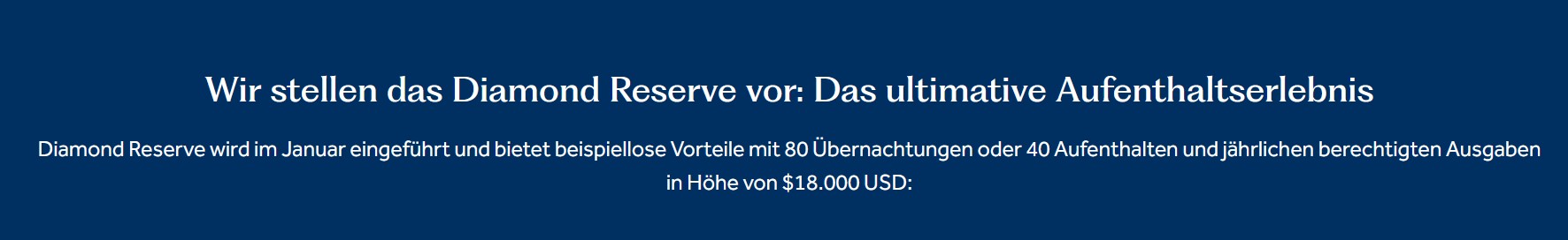 Es wird keinen Lifetime Diamond Reserve Status geben und die Rollover Nights werden eingestellt. Das heißt, ab 2026 werden überschüssige qualifizierende Nächte nicht mehr ins nächste Jahr übertragen. Die komplette Qualifikation muss innerhalb eines Kalenderjahres erreicht werden. Der letzte Übertrag findet von 2025 auf 2026 statt.