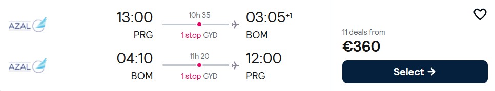 Fliegen Sie mit Azerbaijan Airlines zwischen April und Juni 2026 von Prag nach Mumbai ab 360 Euro.