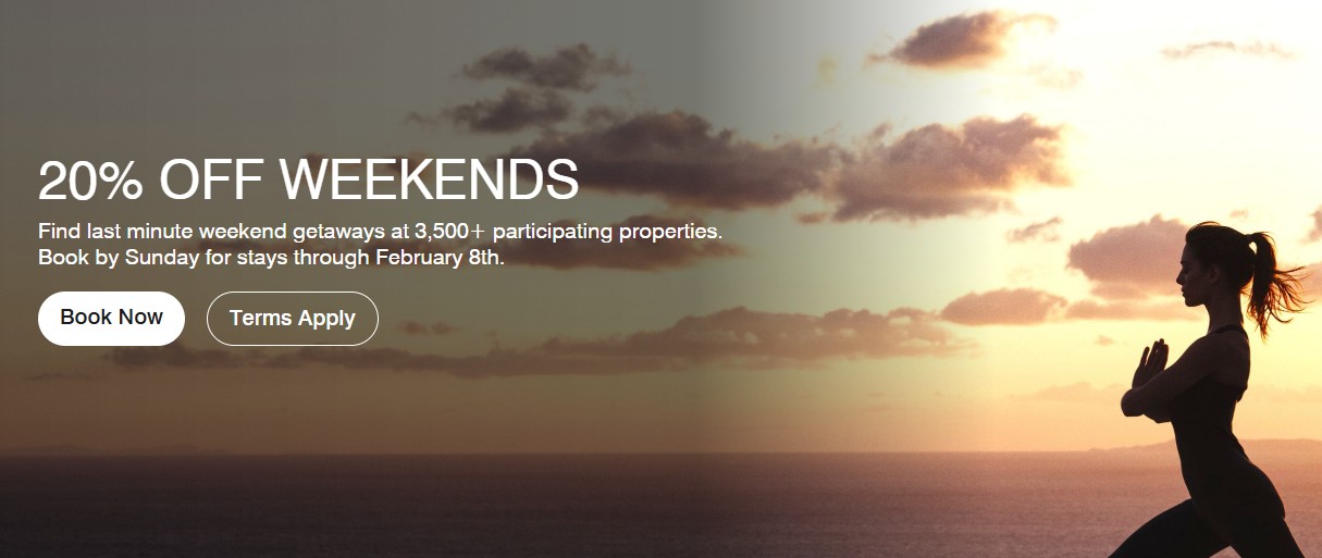 Im Zuge der Marriott Bonvoy Escapes können Sie wieder auf Aufenthalte an den kommenden vier Wochenenden in Hotels und unter der Woche in Resorts bis zu 20% Rabatt erhalten. Die aktuelle Promotion läuft bis 18. Januar für Aufenthalte vom 19. Januar bis zum 08. Februar 2026 in teilnehmenden Hotels weltweit ausgenommen von Großchina. Nicht-Mitglieder erhalten 15% Rabatt.