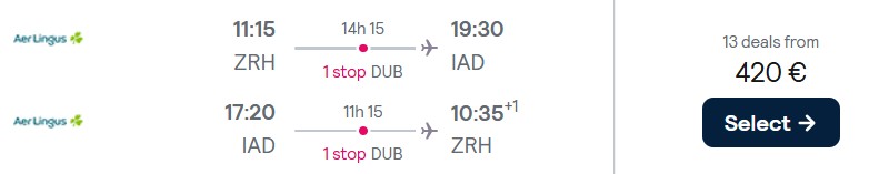 Fliegen Sie mit Aer Lingus in der Economy Class ab 420 Euro von Zürich nach Washington DC oder Chicago. Verfügbar ist das Angebot von März bis Juni 2025. Der Mindestaufenthalt beträgt eine Nacht auf Sonntag.