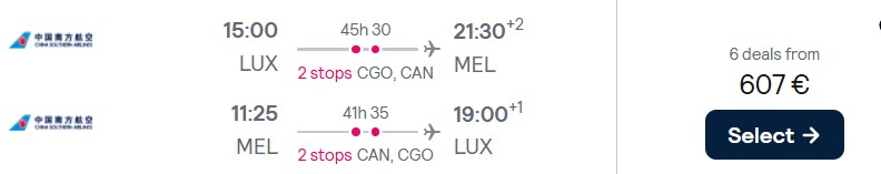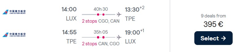 Fliegen Sie mit China Southern Airlines von Luxemburg preiswert in der Economy Class zu verschiedenen Zielen in Asien und Australien. Verfügbarkeiten gibt es zwischen September und November 2025, die Preise starten bei 395 Euro. Es gilt ein Mindestaufenthalt von 3 Tagen oder einer Nacht auf Sonntag.