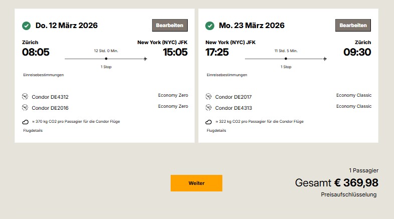Fliegen Sie mit Condor im März und April 2026 von Deutschland, Österreich und der Schweiz nach New York bereits ab 370 Euro.