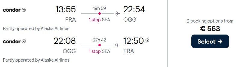 Fliegen Sie mit Condor ab 563 Euro von Frankfurt nach Honolulu oder nach Kahului. Verfügbarkeiten gibt es von März bis Mai 2026. Die genannten Preise wurden vom 02. März bis 15. März 2026 gefunden.