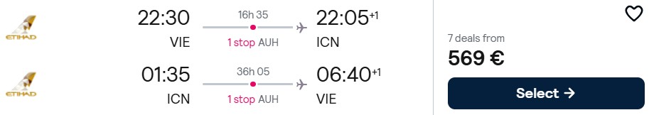 Fliegen Sie mit Etihad Airways in der Economy Class ab 569 Euro von Wien nach Seoul. Anreisen sind im Mai und Juni 2026 möglich.