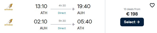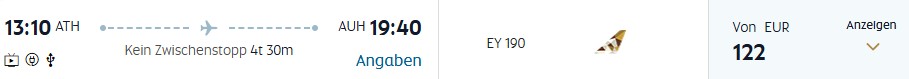 Etihad Airways verkauft im Moment sehr günstige Economy Class Flüge von Athen nach Abu Dhabi. Der Reiseantritt ist bei diesem Angebot allerdings nur zwischen dem 08. Februar und dem 15. Februar 2026 möglich. Handgepäck ist inkludiert, aufgegebenes Gepäck muss extra bezahlt werden.