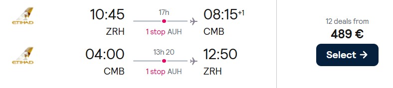 Fliegen Sie mit Etihad Airways in der Economy Class von Deutschland, Österreich und der Schweiz nach Colombo ab 489 Euro. Verfügbar ist das Angebot von Februar bis Juni 2026.