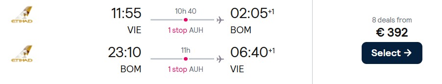 Fliegen Sie mit Etihad Airways ab 392 Euro von Wien zu verschiedenen Zielen in Indien. Verfügbar ist das Angebot für Abreisen zwischen März und Juni 2026.