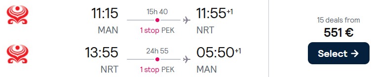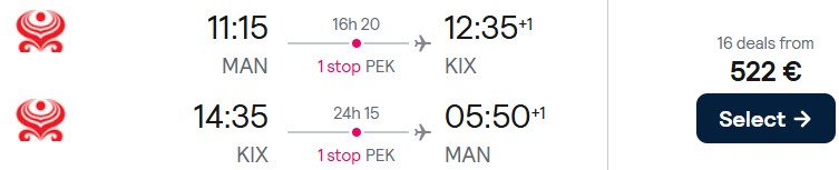 Fliegen Sie mit der Skytrax 5-Sterne-Fluggesellschaft Hainan Airlines in der Economy Class bereits ab 522 Euro von Manchester nach Tokio oder Osaka. Verfügbar ist das Angebot von November 2025 bis Januar 2026.