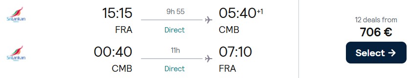 SriLankan Airlines verkauft bis auf Widerruf relativ günstige Economy Class Tickets von Frankfurt nach Colombo. Anreisen sind möglich im April sowie von Oktober bis Dezember 2026.