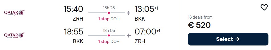 Fliegen Sie mit Qatar Airways von Wien und Zürich nach Bangkok ab 520 Euro. Verfügbarkeiten gibt es von September 2026 bis Februar 2027.