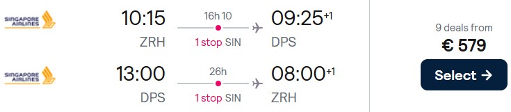 Fliegen Sie mit Singapore Airlines preiswert in der Economy Class von Zürich oder München nach Bali. Verfügbarkeiten gibt es von Januar bis März 2026 und die Preise starten bei 579 Euro.