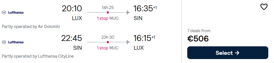 Fliegen Sie mit Lufthansa in der Economy Class von Luxemburg nach Singapur ab 506 Euro. Verfügbarkeiten gibt es im Mai und Juni 2026.