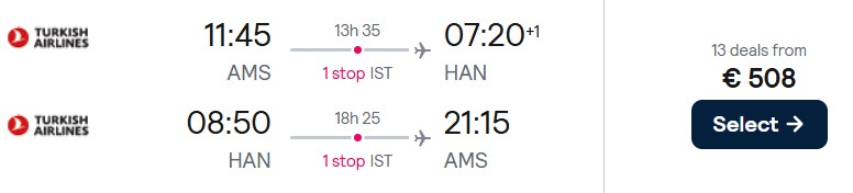 Fliegen Sie mit Turkish Airlines von Amsterdam nach Hanoi und nach Ho Chi Minh City bereits ab 508 Euro. Verfügbar ist das Angebot von November 2025 bis März 2026.