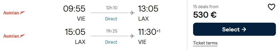 Fliegen Sie mit Austrian Airlines nonstop in der Economy Class von Wien nach Los Angeles ab 530 Euro. Verfügbar ist das Angebot für Reisen von Ende April bis Mitte Juli 2026.
