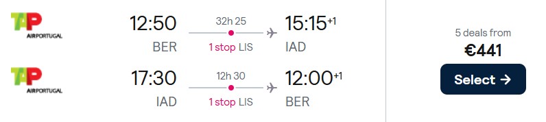 Fliegen Sie mit TAP Air Portugal von Berlin nach Washington D.C. ab 441 Euro. Verfügbarkeiten gibt es von Januar bis März 2026.