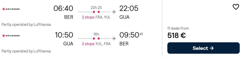 Fliegen Sie mit Air Canada von Deutschland nach Guatemala ab 518 Euro. Verfügbar ist das Angebot im Mai und November 2026 sowie im Januar 2027.