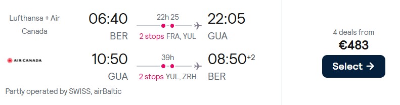 Fliegen Sie mit Air Canada von Berlin nach Guatemala ab 483 Euro. Verfügbar ist das Angebot von Januar bis März 2026.