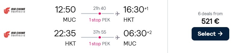 Fliegen Sie mir Air China bereits ab 521 Euro von Frankfurt oder München nach Phuket. Verfügbar ist das Angebot für Abflüge im Januar und Februar 2026.