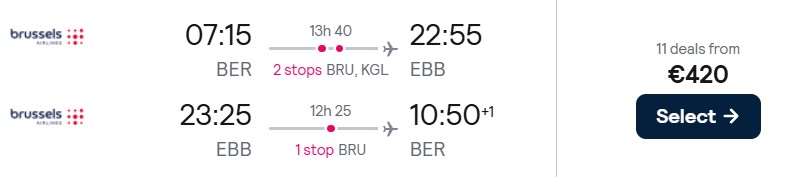Fliegen Sie mit Brussels Airlines von Berlin nach Entebbe schon ab 420 Euro. Verfügbarkeiten gibt es im Februar und März 2026.