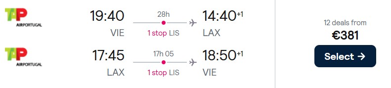 Reisen Sie mit TAP Air Portugal von Wien nach Los Angeles ab 381 Euro. Verfügbarkeiten gibt es von Januar bis März 2026.