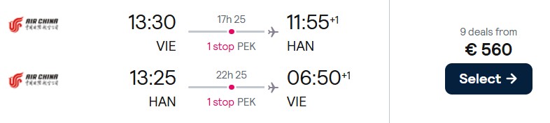 Aktuell verkauft Air China günstigere Economy Class Tickets von Wien nach Hanoi und Ho Chi Minh Stadt. Verfügbarkeiten gibt es von April bis Juni 2026.