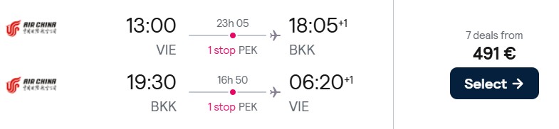 Fliegen Sie mit Air China in der Economy Class von Wien zu verschiedenen Zielen in Asien ab 491 Euro. Verfügbarkeiten gibt es zwischen November 2025 und März 2026.