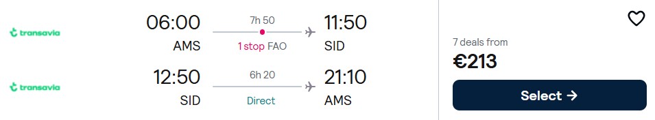 Fliegen Sie ab 213 Euro mit Transavia von Amsterdam nach Sal auf den Kapverden. Verfügbarkeiten gibt es zwischen November 2026 und Februar 2027.
