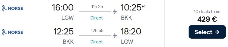 Fliegen Sie nonstop mit Norse Atlantic Airways bereits ab 429 Euro von London nach Bangkok. Verfügbarkeiten gibt es zwischen November und Dezember 2025 sowie im März 2026.