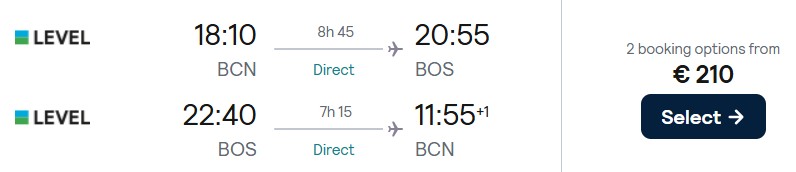 Bis zum 03. Dezember verkauft die spanische Low-Cost Airline LEVEL sehr günstige Economy Class Tickets von Barcelona nach Boston. Verfügbarkeiten gibt es von Januar bis März 2026. Tickets in der Premium Economy Class gibt es ab 648 Euro.