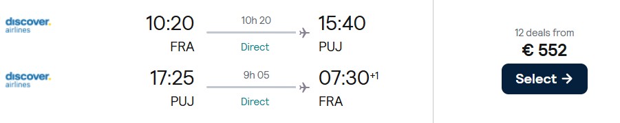 Fliegen Sie nonstop mit Discover Airlines von Frankfurt nach Punta Cana ab 552 Euro. Verfügbarkeiten gibt es bis März 2026.