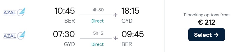 Bis zum 28. November verkauft Azerbaijan Airlines günstige Direktflüge von Berlin und Wien nach Baku ab 212 Euro. Verfügbarkeiten gibt es von Januar bis März 2026.