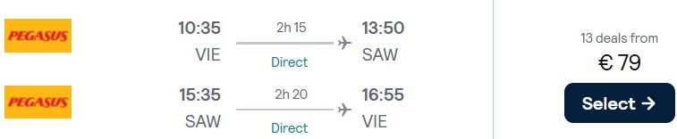 Fliegen Sie nonstop mit Pegasus Airlines bereits ab 79 Euro von Wien nach Istanbul (SAW). Verfügbarkeiten gibt es zwischen März und Juni 2025.