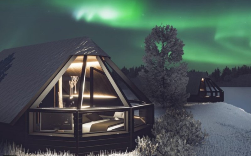 Das Northern Lights Village in Levi bietet einzigartige Aurora-Suiten mit Glasdächern und Panoramablick auf die verschneite Landschaft.