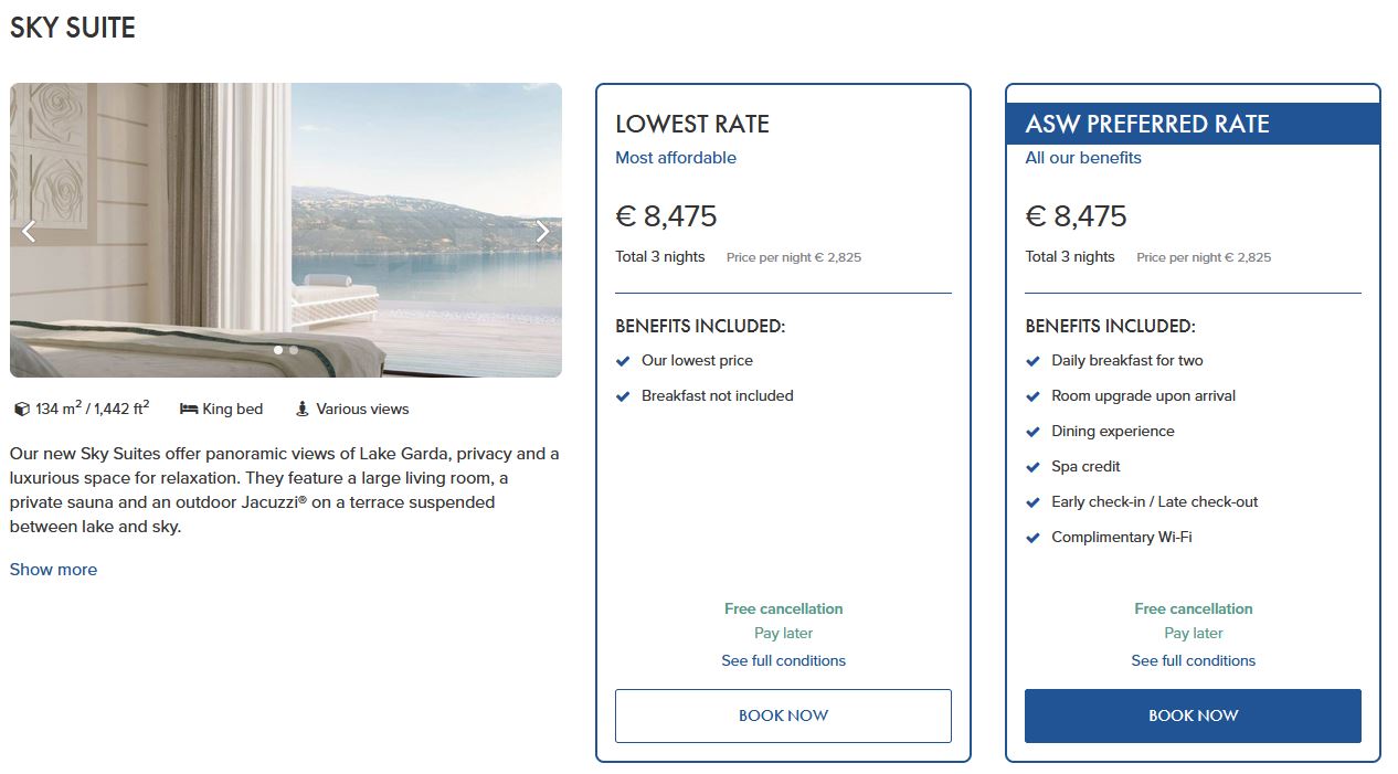 Im Augst hatten wir einen Aufenthalt im Lefay Resort am Gardasee für einen Geburtstag organisiert. Gebucht war eine Junior Suite für drei Nächte und es gab am Ende eine Sky Suite, die dreimal soviel kostete.